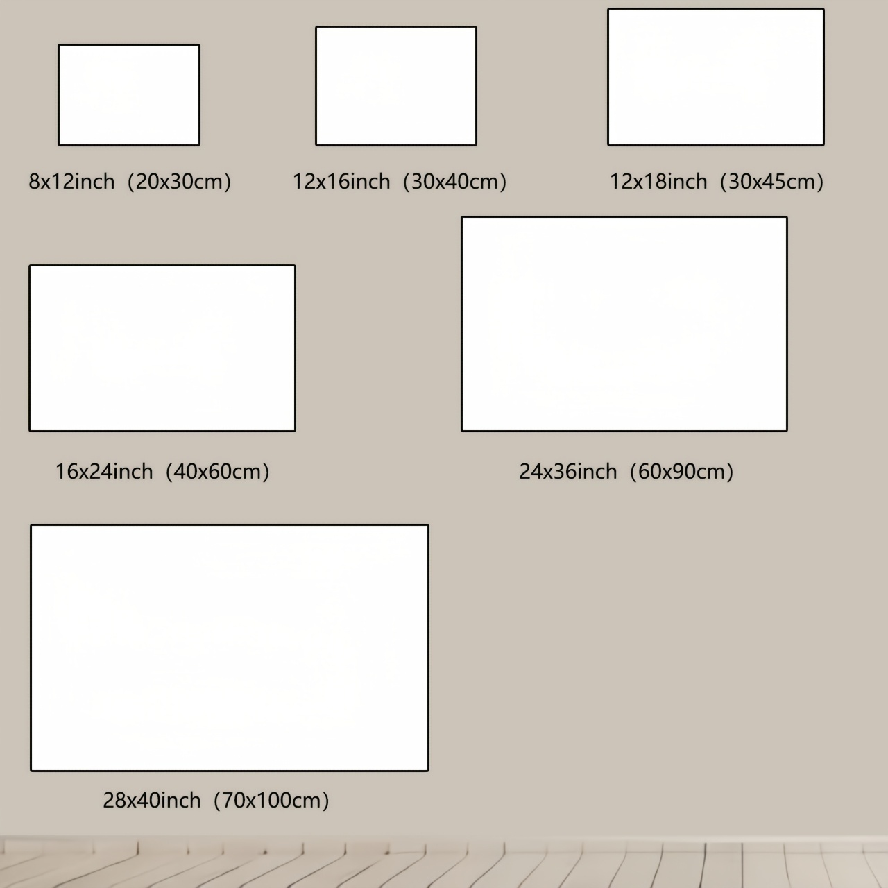 - Sizes Available: 8x12 inches, 12x16 inches, 12x18 inches, 16x24 inches, 24x36 inches, 28x40 inches.